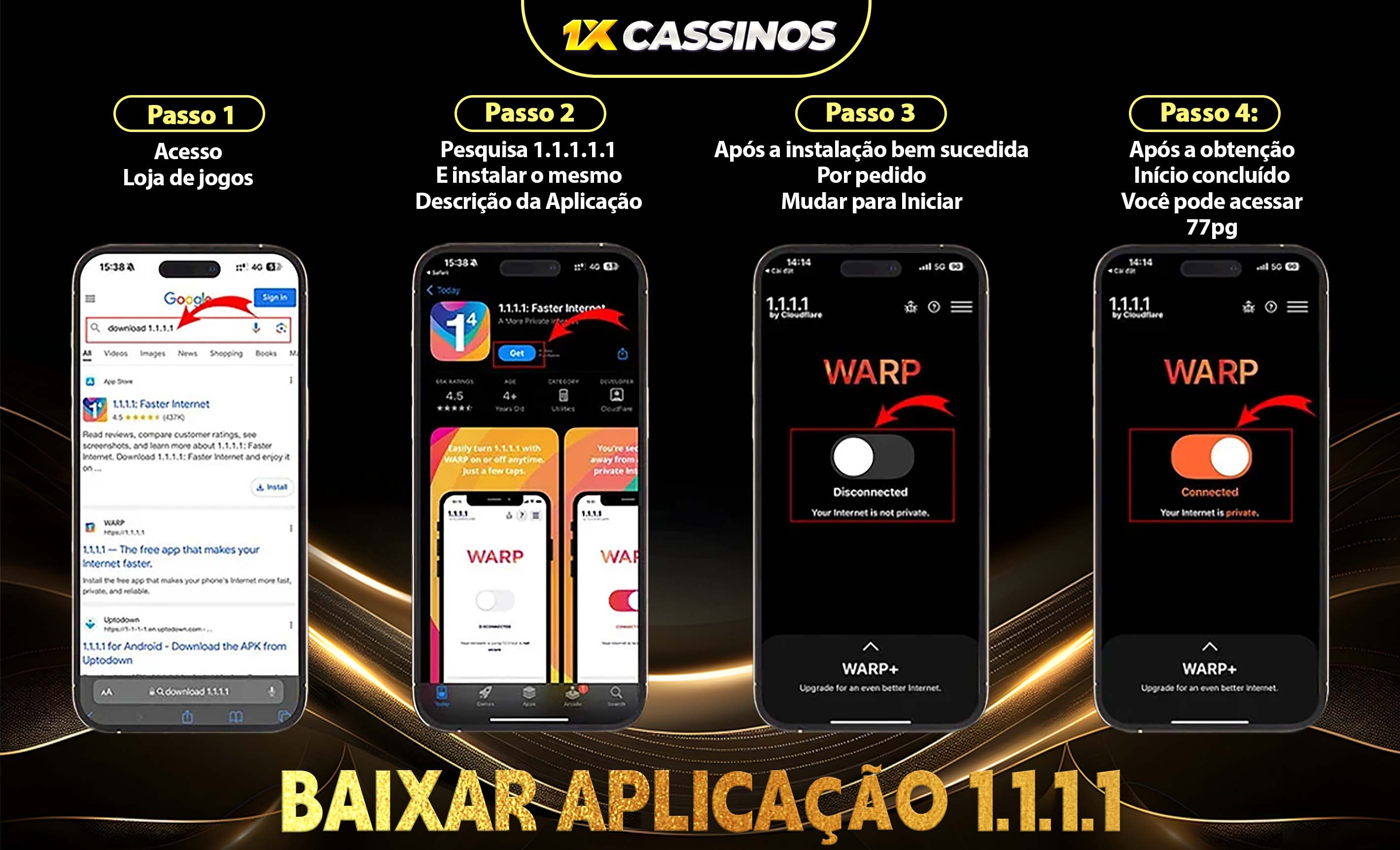 Passo 1: Descarregue a APP no Google play ou ApP Store:1.1.1.1 (https://1.1.1.1/) Uma Intermet mais segura